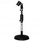 Adjustable height tabletop microphone stand, comes with mic clip.